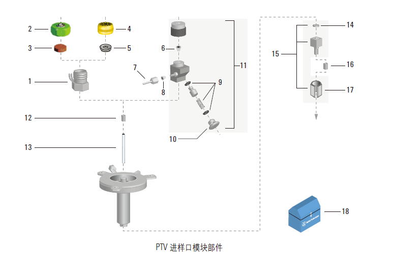 申明 單元 部件號 QuickPick 隔墊吹掃添補柱進樣口防備性保護東西包 包含 5 個不粘連 BTO 隔墊、1 個 O 形圈、1 個密封墊圈, 和 1 個一次性玻璃襯管 5188-6498 Merlin 微密封墊 5182-3444 Merlin 微量密封墊高壓螺帽 5182-3445 隔墊螺帽,吹掃進樣口 18740-60835 不粘連散失與溫度優化 (BTO) 隔墊,11 mm 50/包 5183-4757 添補柱進樣口拔出焊
