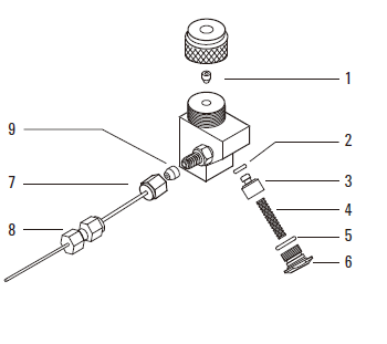 ?PTV 無隔墊頭 名目 申明 部件號 無隔墊頭 G2617-60507 1 PTFE 密封墊圈 (針頭密封) 5182-9748 2 Kalrez 密封墊 5182-9759 3 閥體 5182-9757 4 壓簧 5182-9758 5 Viton 密封墊 5182-9775 6 密封件 5182-9760 7 PTV 色譜柱討論毗連管(包含 1/6 英寸螺帽和密封墊圈) G2617-80550 8 無隔墊頭焊件 G3500-800