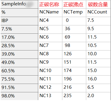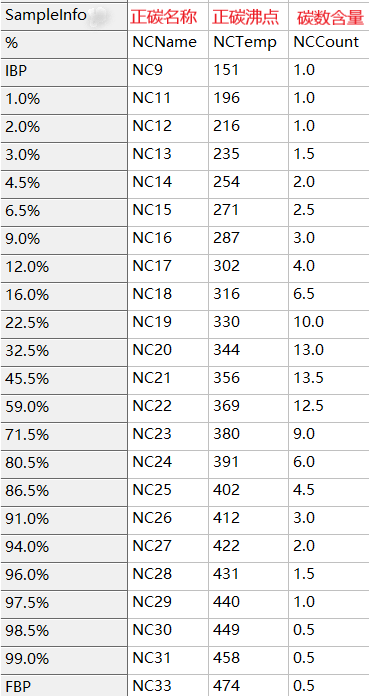 ② ASTM D7096和ASTM D86餾程闡發成果及碳數含量、飽和蒸氣壓值: