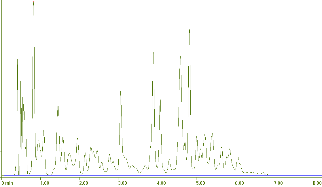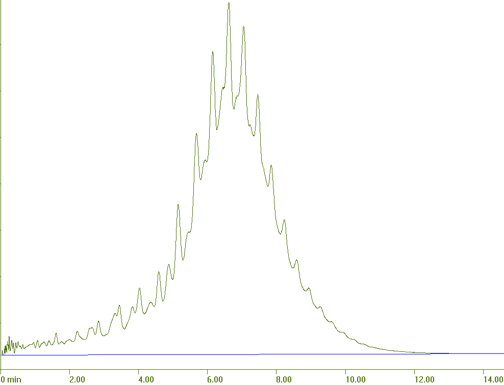 ① 120#汽油進行色譜摹擬萃取油樣譜圖: