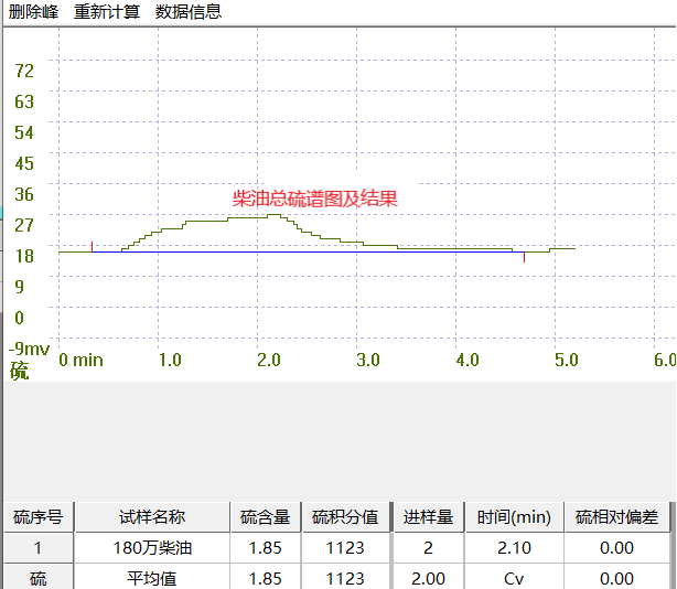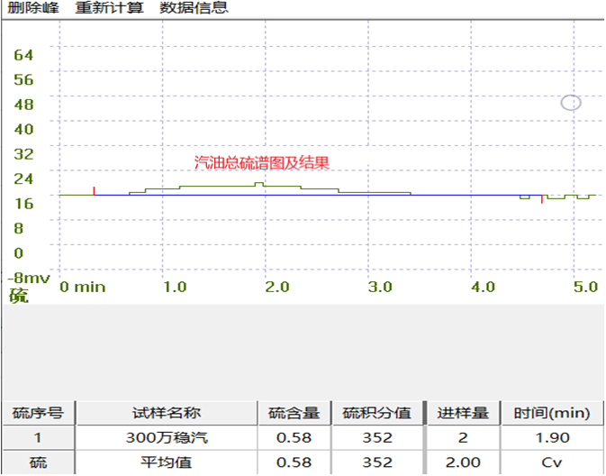 ⑥ 汽油總硫樣品英文譜圖及評估: